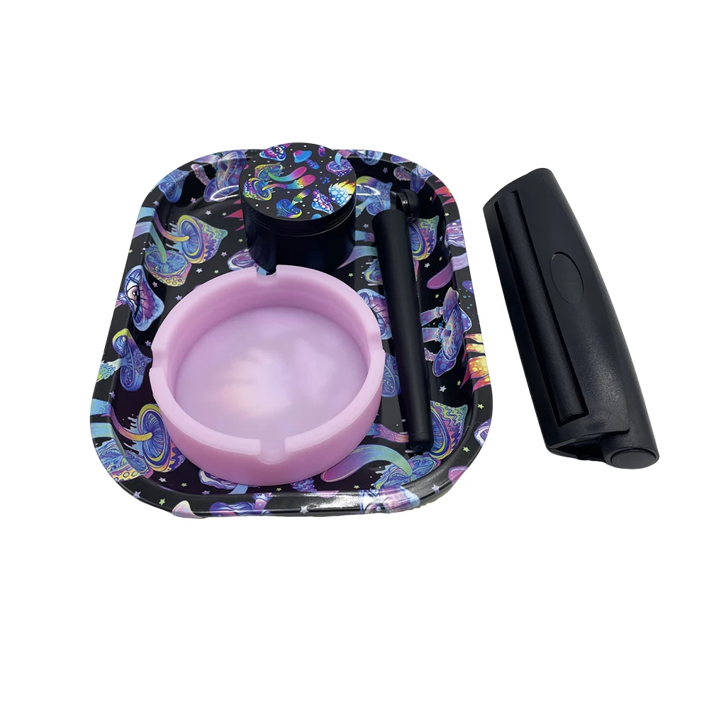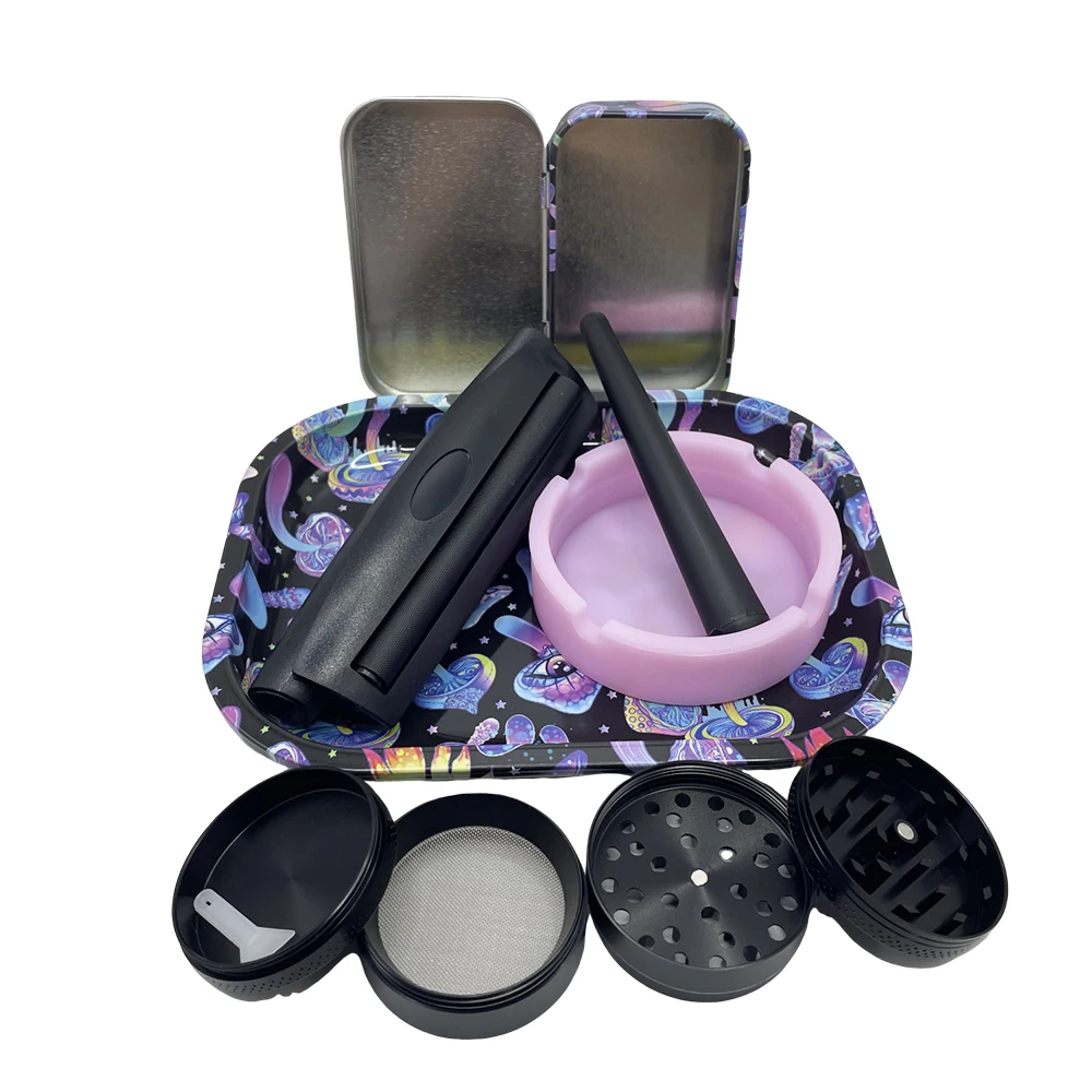 6pcs set- Ash Tray, Rolling Tray, Grinder, Storing Tin and Skin Holder for Rolling