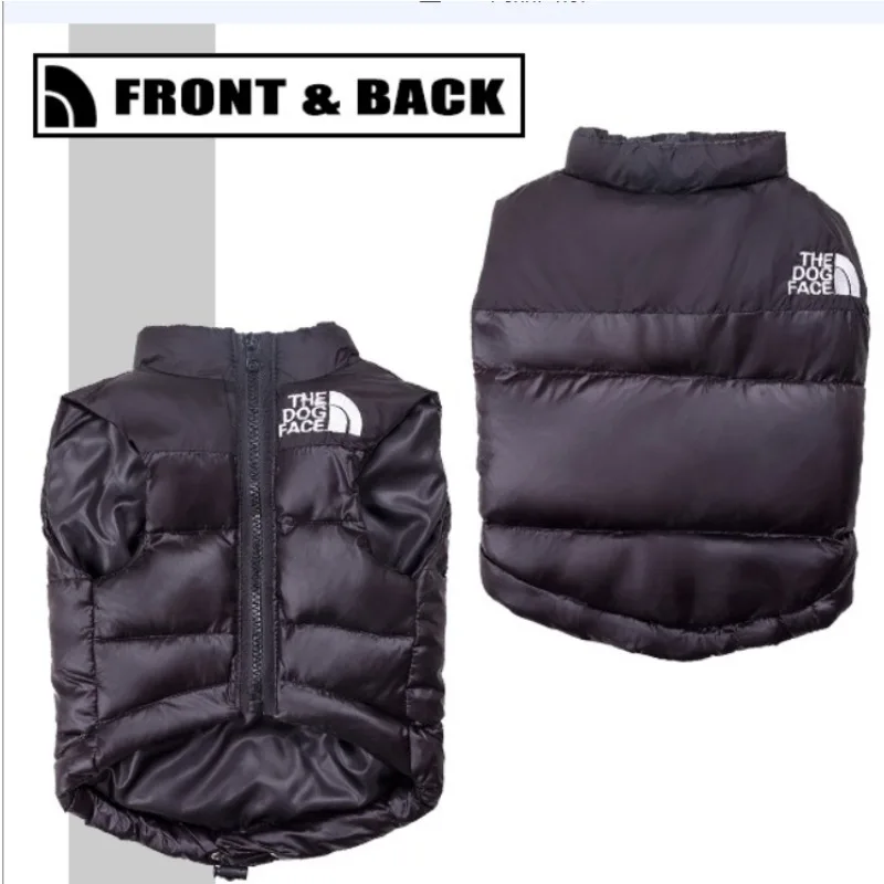 North face rip off body warmer for dogs - the paw face.